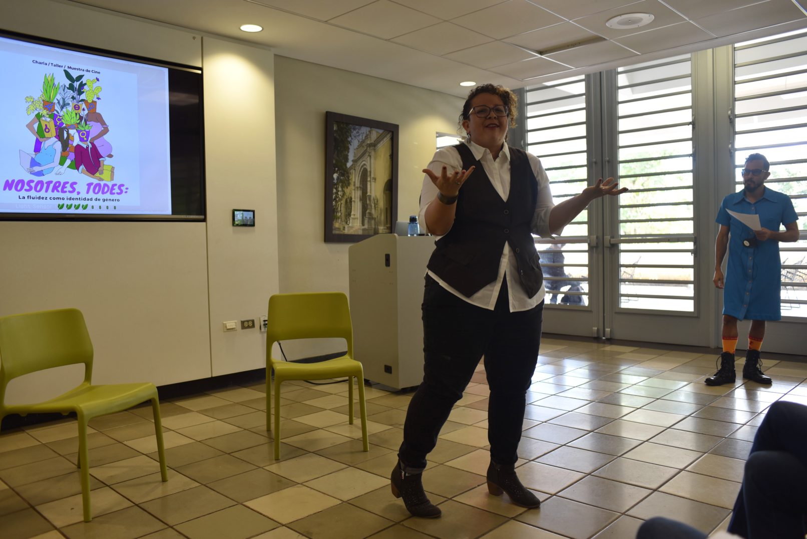 Una invitación a estudiar a les otres. Explorar las diferentes maneras de asumir la fluidez, habitar la neutralidad. Utilizando la experiencia y el conocimiento de nuestres facilitadores, la conversación ofrecerá maneras de negociar, asumir y/o comprender la identidad de género fluida o variante. Se discutieron términos como genderfluid, gender queer, genderfuck y otras palabras apropiadas/reclamadas por las personas no-binarias para identificarse. Durante la charla se proyectó la película corta “They” de la autoría de Ignacio con espacio para discusión y preguntas.